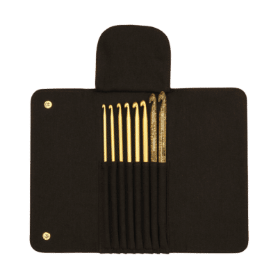 The crochet hooks in size 3,5 mm, 4,0 mm, 4,5 mm, 5,0 mm, 5,5 mm, 6,0 mm are made of aluminium.