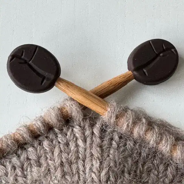 Beautiful stitch stopper shaped like a coffee bean.